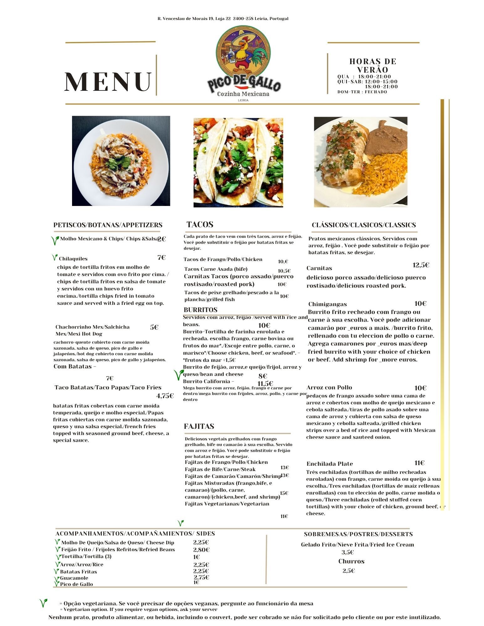 All at Pico De Gallo, extend a warm welcome to you in Leiria! If you are looking for a delicious selection of mexican cuisine, we are here to serve you the best. Sit and enjoy our skillfully prepared fries and tacos, designed to cater to all tastes. Here you could treat yourself to our delectable ice cream, dessert, and churros. In quiet, relaxing surroundings, enjoy flavorsome lunch. As well as serving food, we provide nice happy hour.
